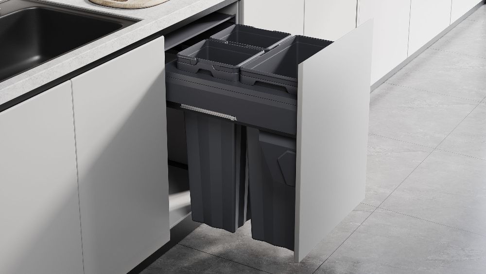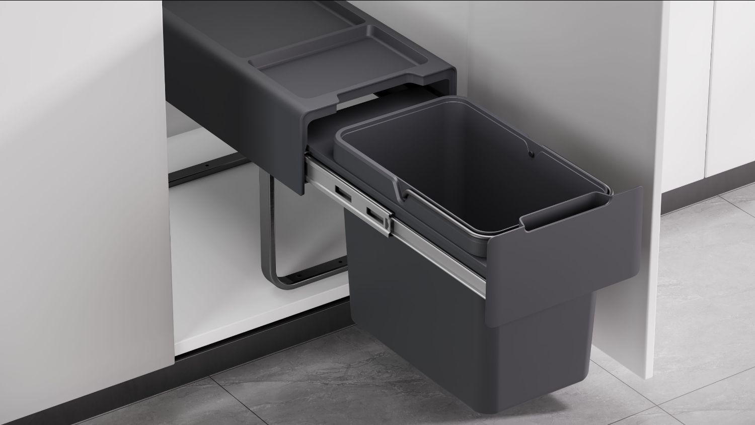 The OPTIO collection ensures optimal adaptability, allowing you to customise your space perfectly. Finished in a sleek Dark Grey, these bins seamlessly blend modern aesthetics with premium quality. For added convenience, optional door-mounted brackets are available, providing a seamless integration into your cabinetry.