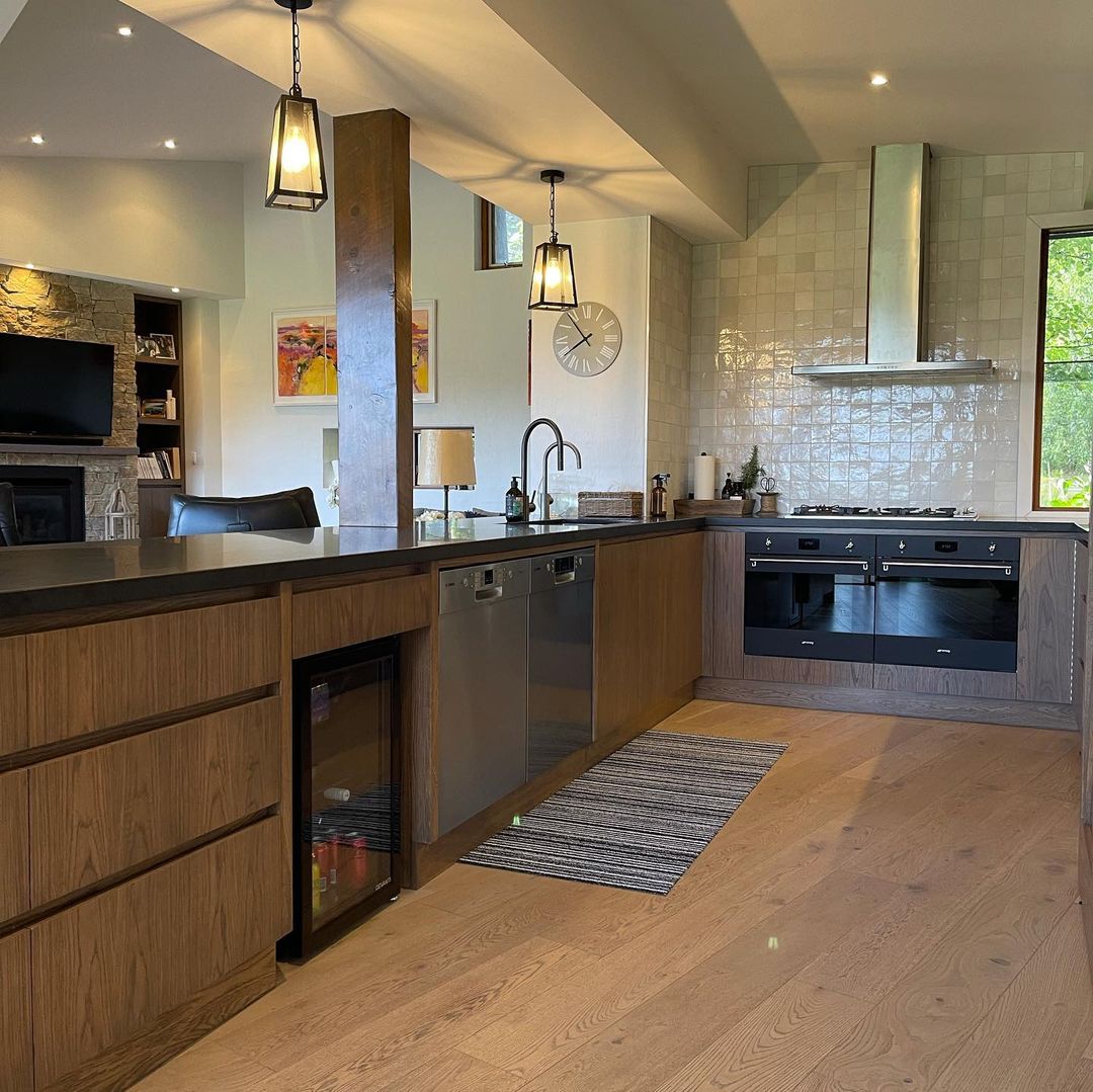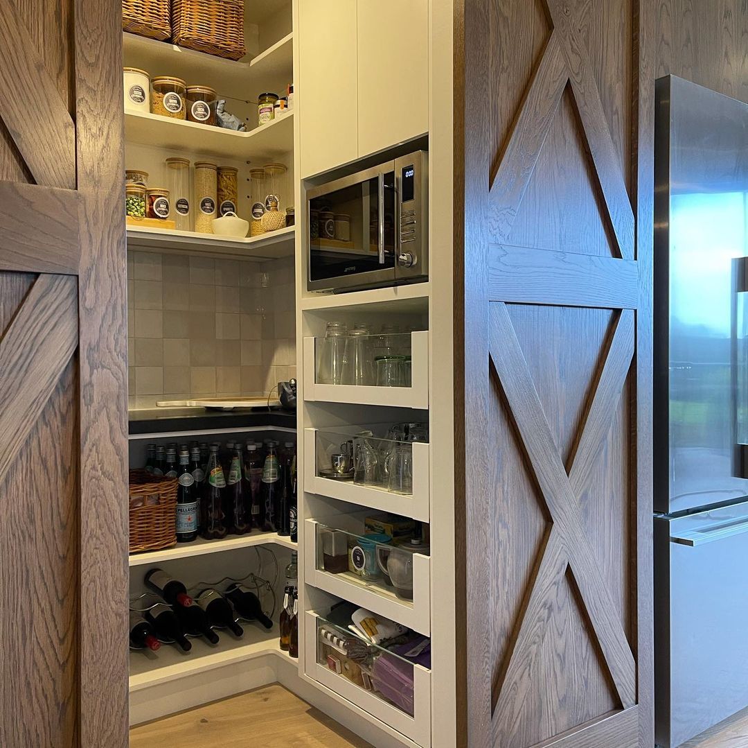 This unique and stylish kitchen renovation was completed by @classic_cabinets. The space has an abundance of space and storage thanks to the use of Blum hardware throughout the drawers and pantry.