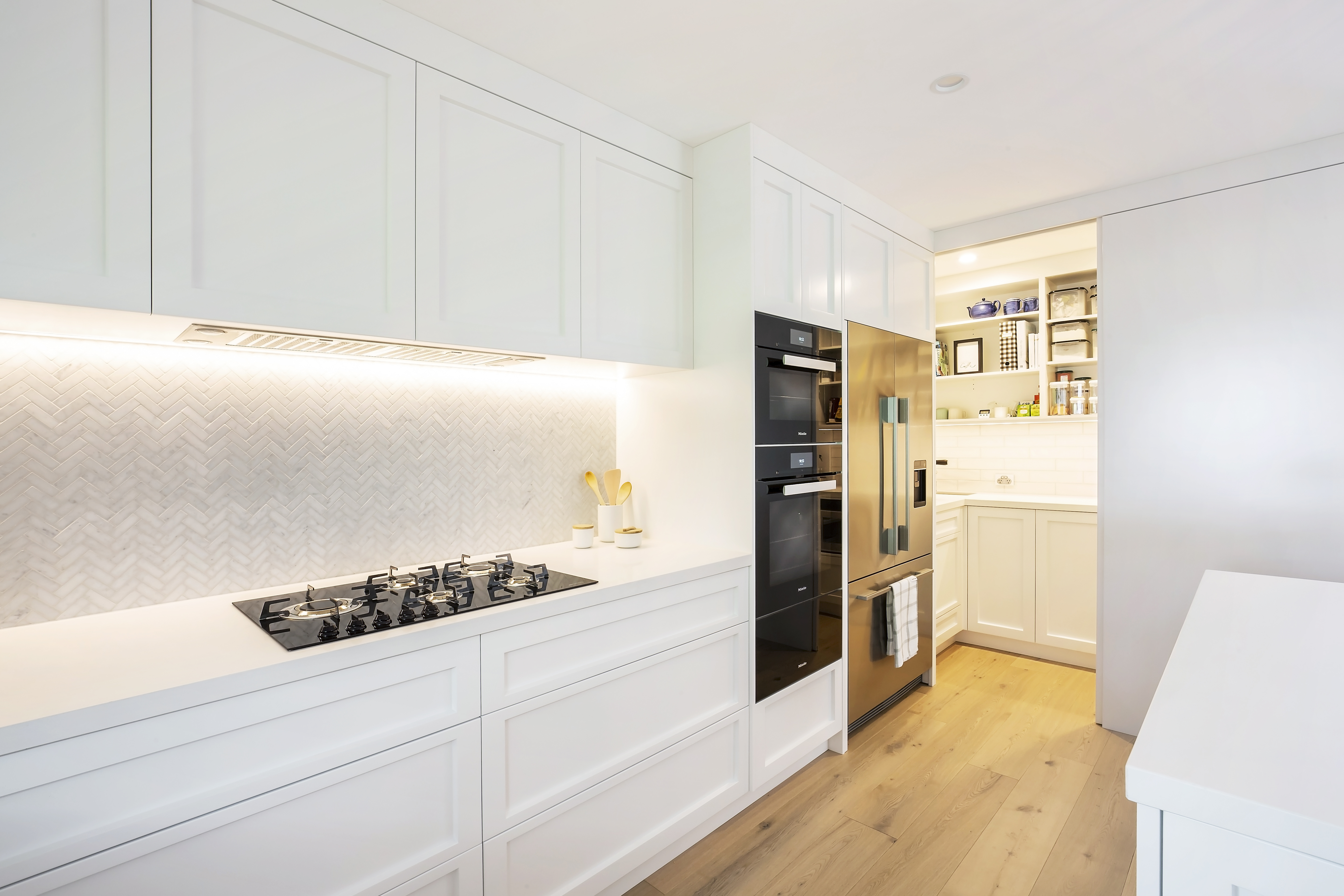 Overhead cabinets throwing undesirable shadows on your bench? Try our LED Strip Lighting from L&S to solve the problem. Paired with Blum hardware throughout, this a great contemporary kitchen design. Thanks CTI Kitchens for this design inspiration!
