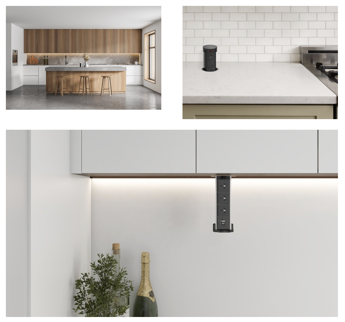 Docking Drawer is the worldwide leader of hidden electrical outlets. Our 220V Flush Pop-Up Outlets are Australian Certified for Safety and EMC and simple to install into any kitchen worktop.