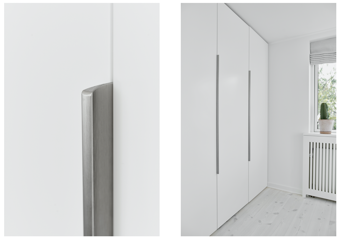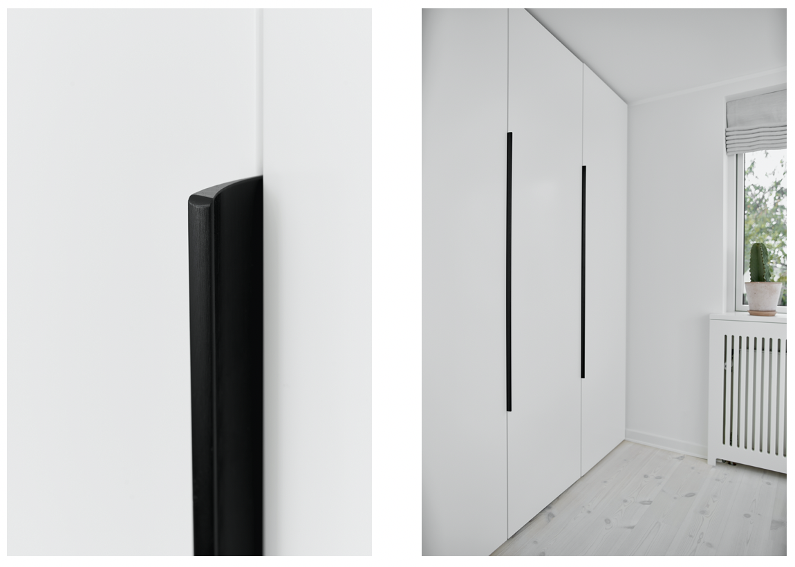 They can be used vertically on cabinets on fridge doors, basic wardrobe doors, pantry and sliding wardrobe doors and are available in two sizes (600mm and 120mm) and in 4 colours (Matt White, Matt Black, Inox Look and Brushed Brass.