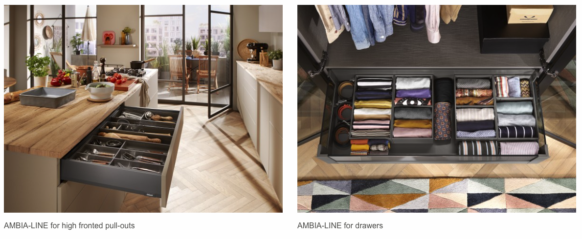 - Straight on the inside – The drawer side is straight on the inside so you can use storage space right up to the edge. Combine with AMBIA-LINE to create stunning interiors.