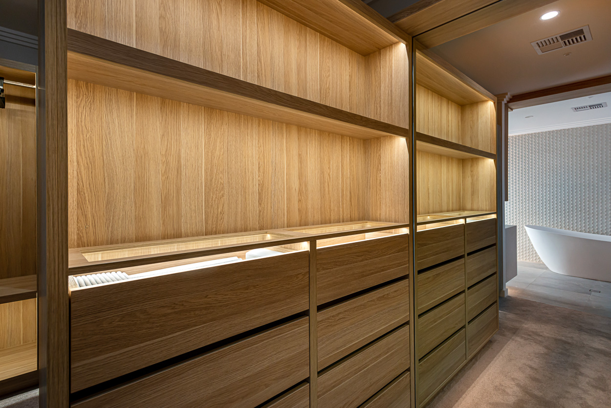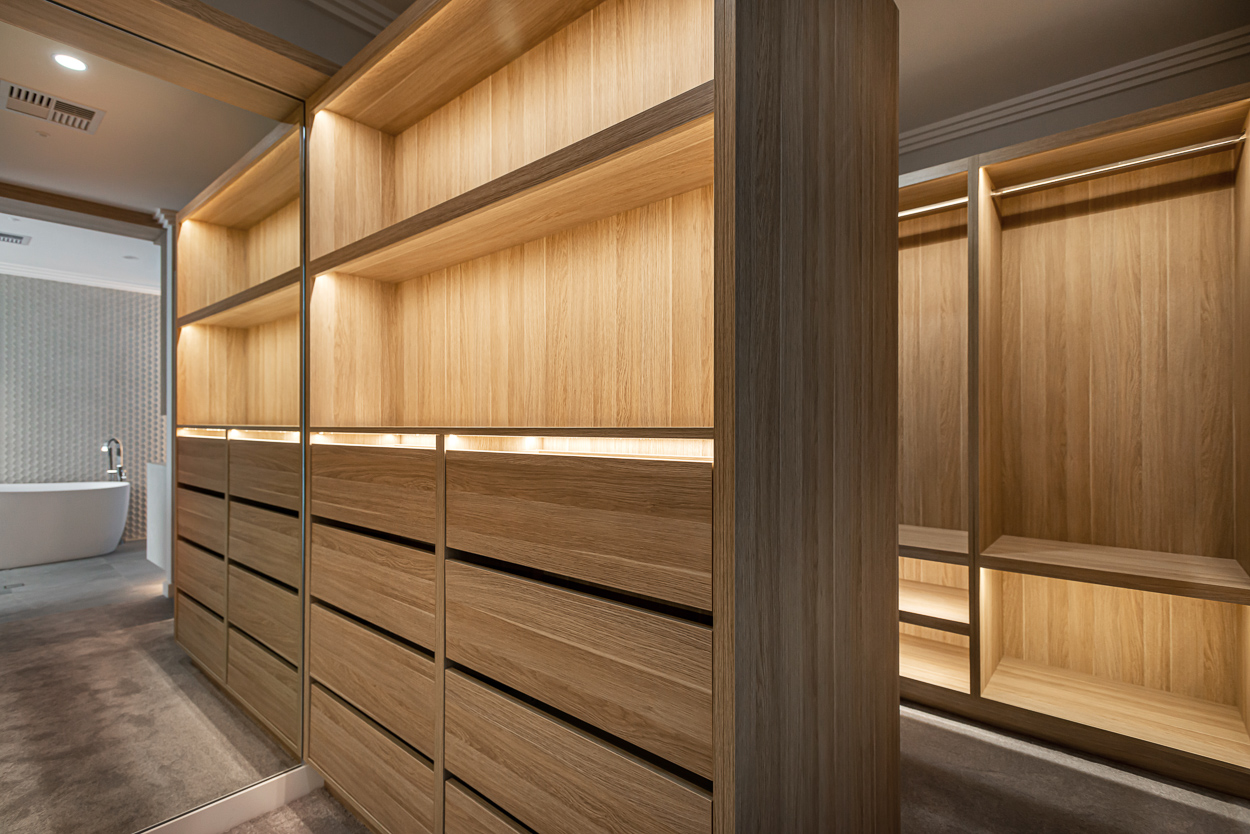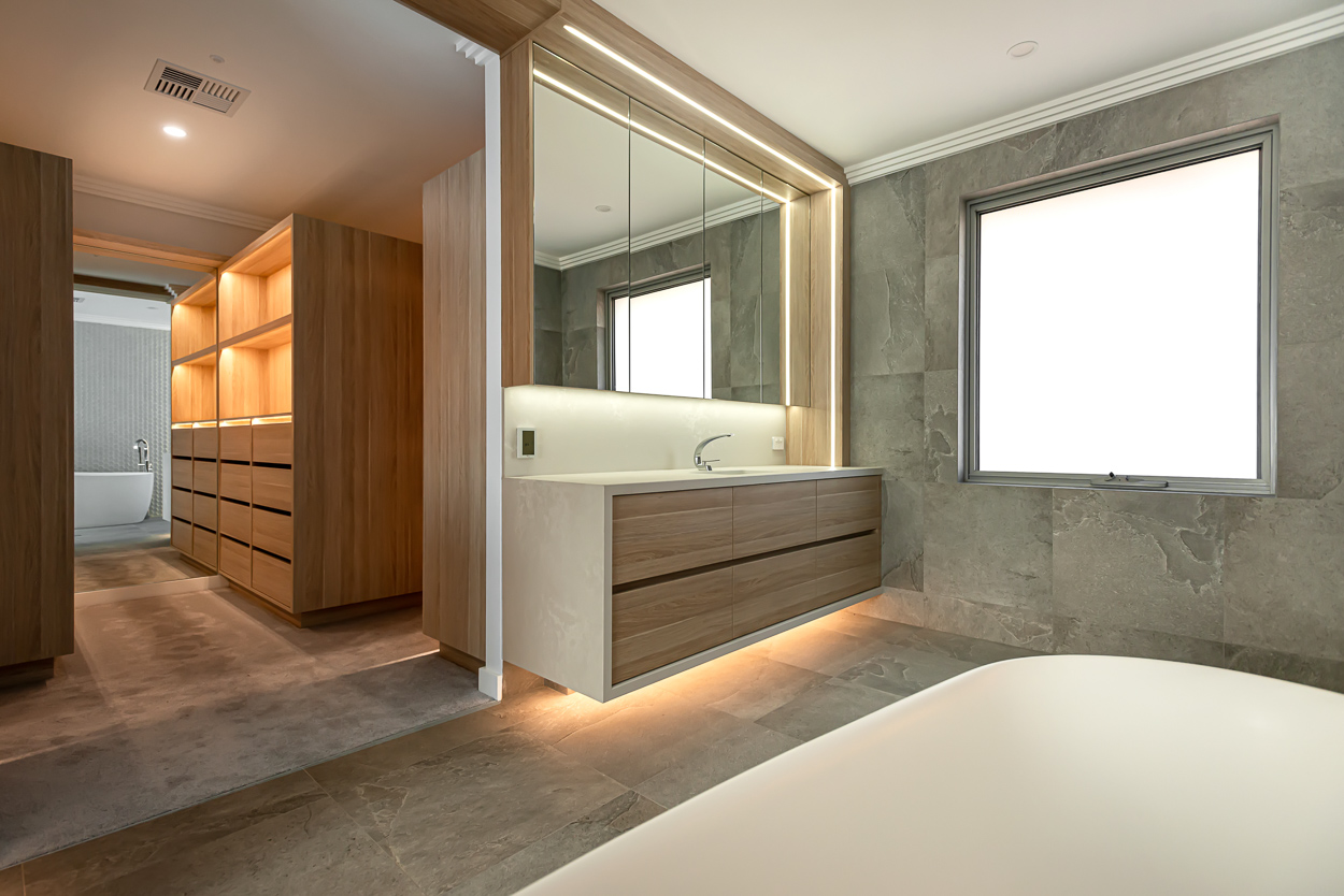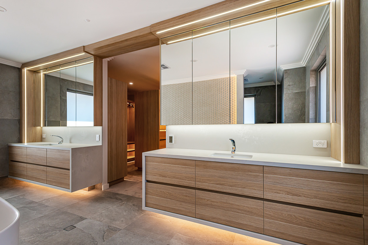 Show off the best features of your home with LED strip lights from L&S. This stunning home fitout for a residential project in Perth was completed by Ivo Cabinets. The three spaces, kitchen, bedroom and bathroom, make amazing use of lighting throughout the custom cabinetry.