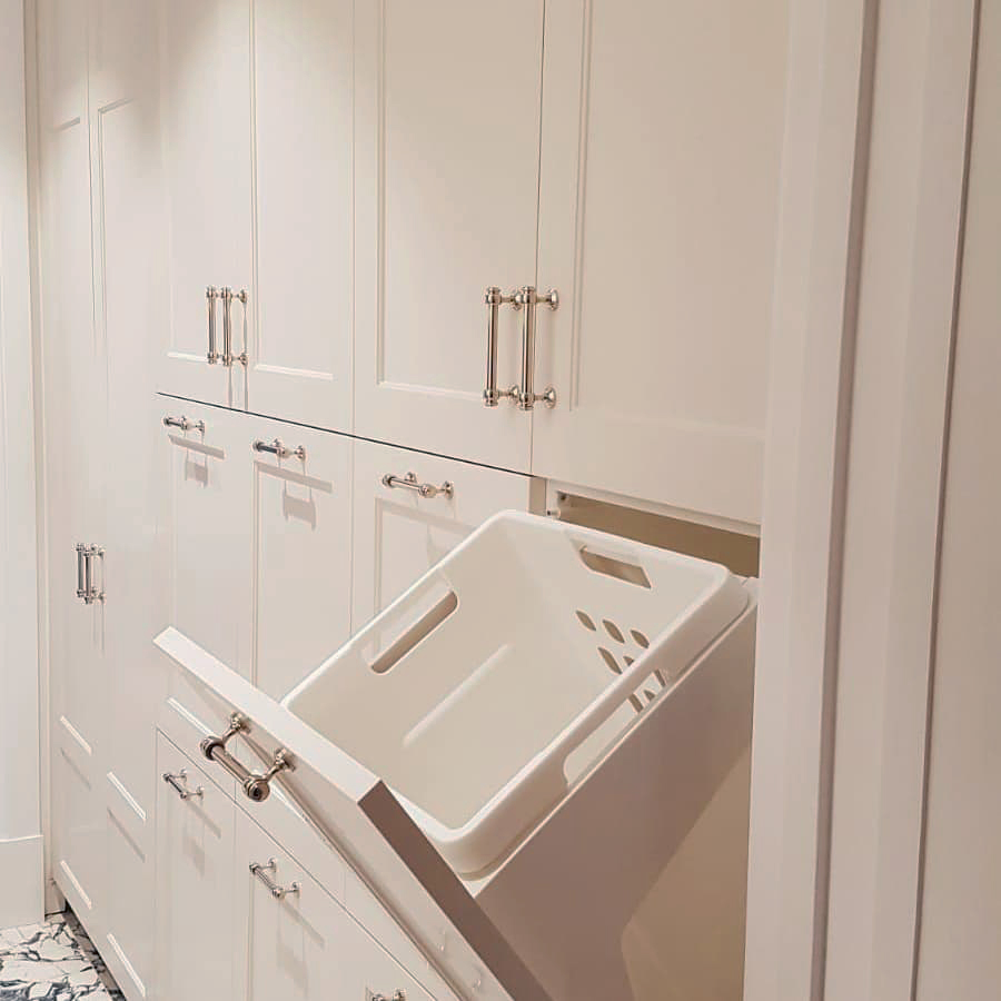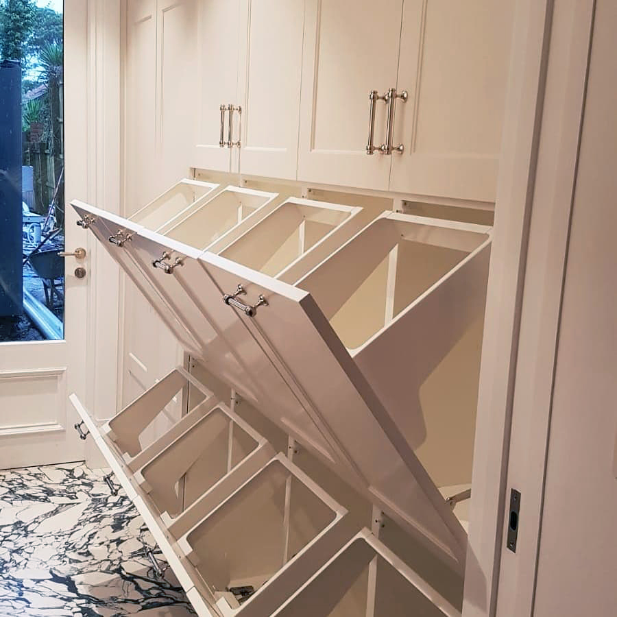 The two rows of tiltdown laundry baskets makes the space very organised and practical for the whole family.