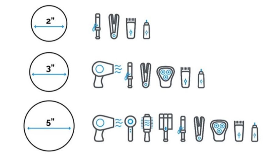 Available in a variety of sizes and styles to fit blow dryers, curling irons, shavers and other styling accessories.