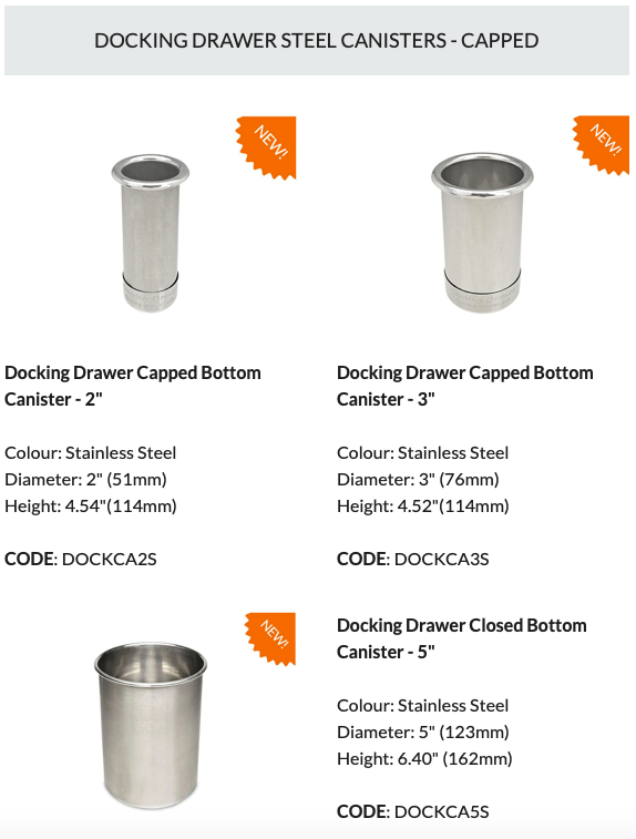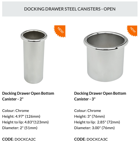 Choose from an open, closed, capped or crimped bottom or a bathroom canister bundle. With sizes ranging from 2 to 5 inches, and available in a stainless steel finish that is electropolished for a shiny bright smooth corrosion resistant finish or basic chrome, you're sure to find drawer canisters that will pair perfectly with any project.