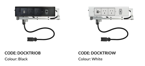 Designed specifically for use inside of a drawer, Docking Drawer Trio outlets come with interlocking safety features that cut power when surrounding temperatures exceed set standards.