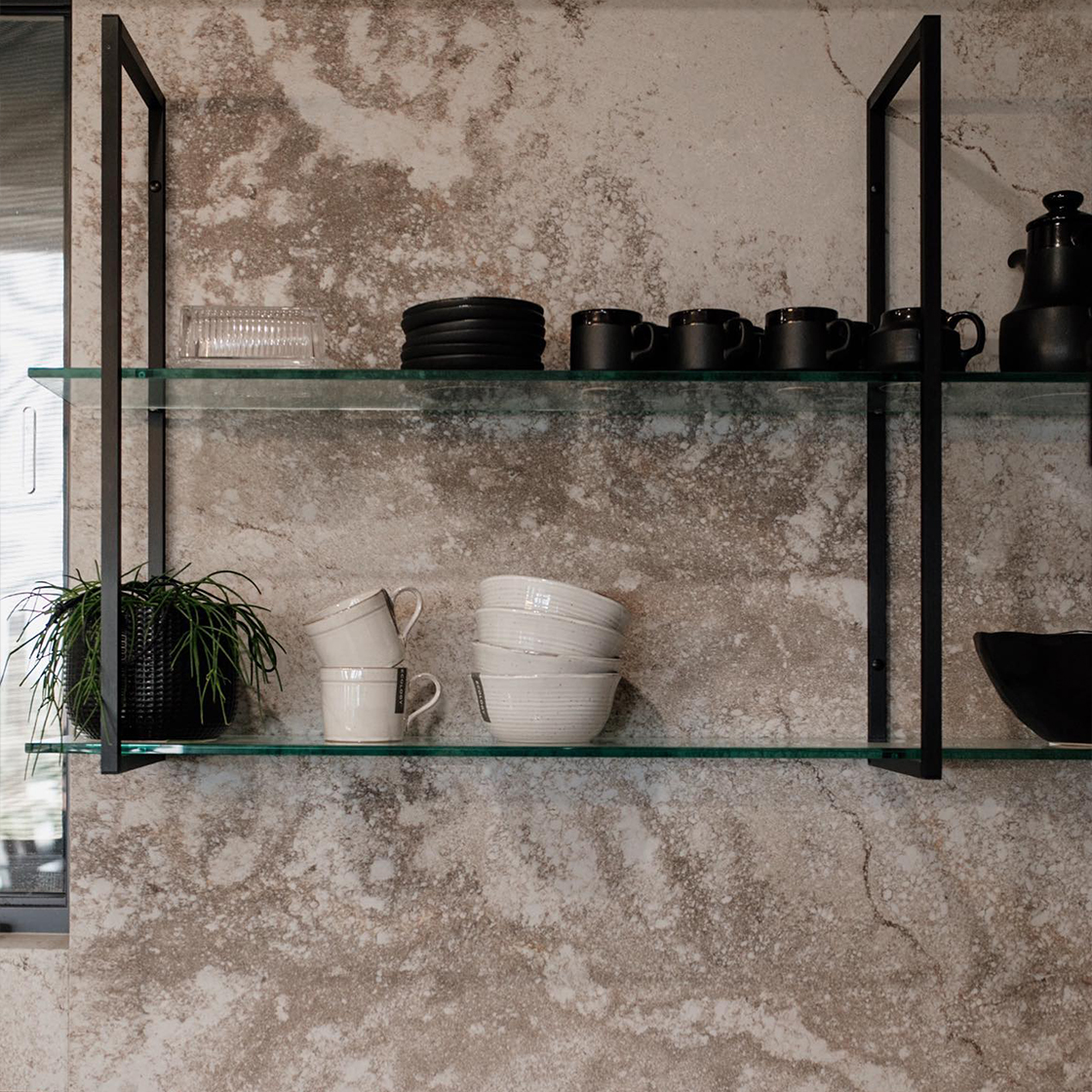 We love the use of the Cosma System 16 shelving in this kitchen project by @poletti.custom.kitchens