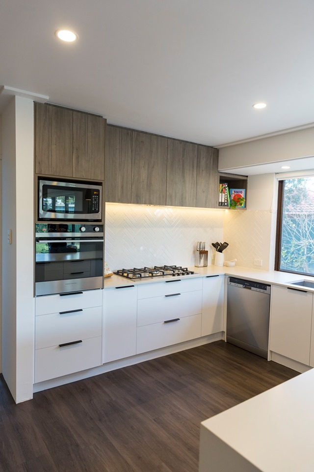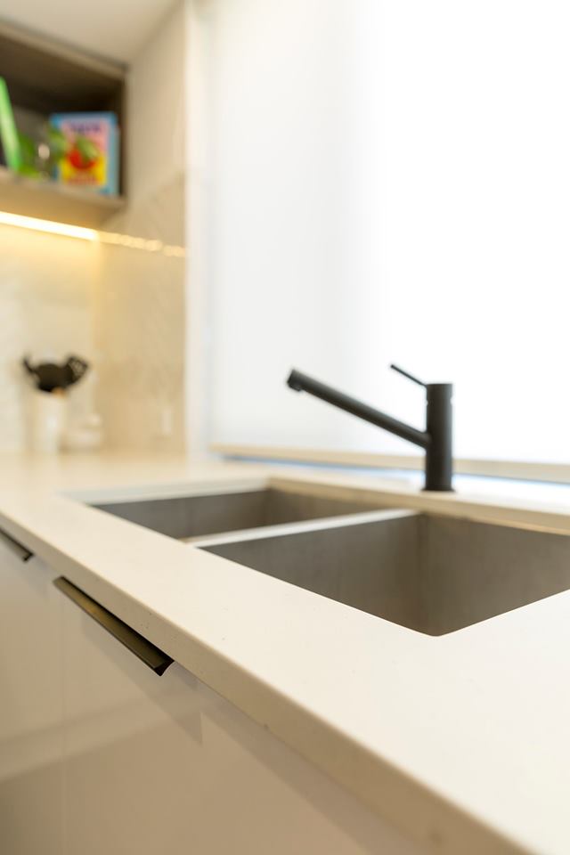 Keep it fresh and simple with the Furnipart Edge Straight handle. Used in 2 different sizes in this project by Refined Cabinets in Perth.