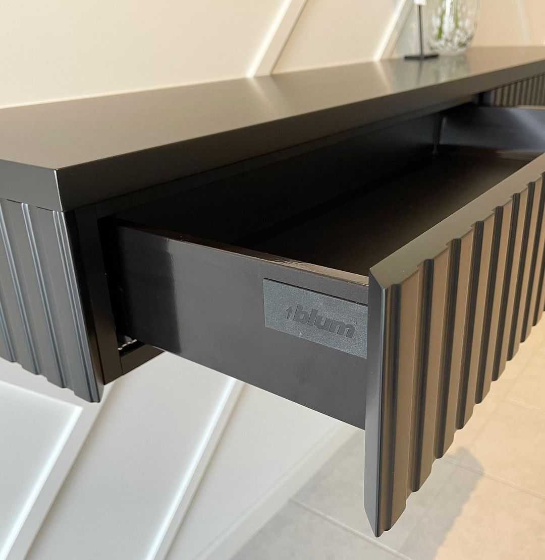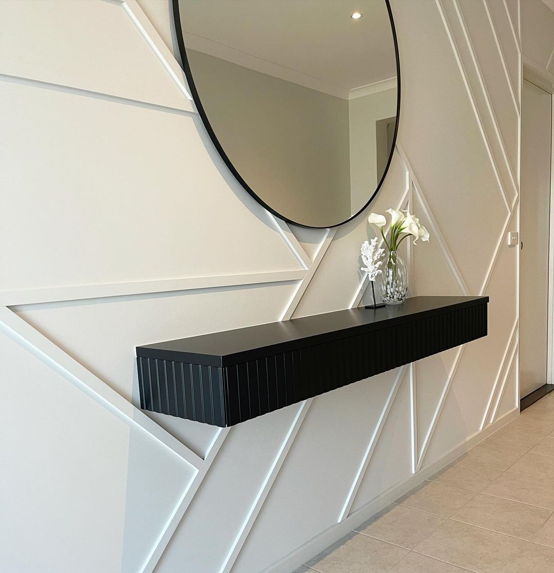 This simple yet effective floating hall table was created by @riverlinejoinery. It features Blum hardware that allows for handleless fronts and ease of use.