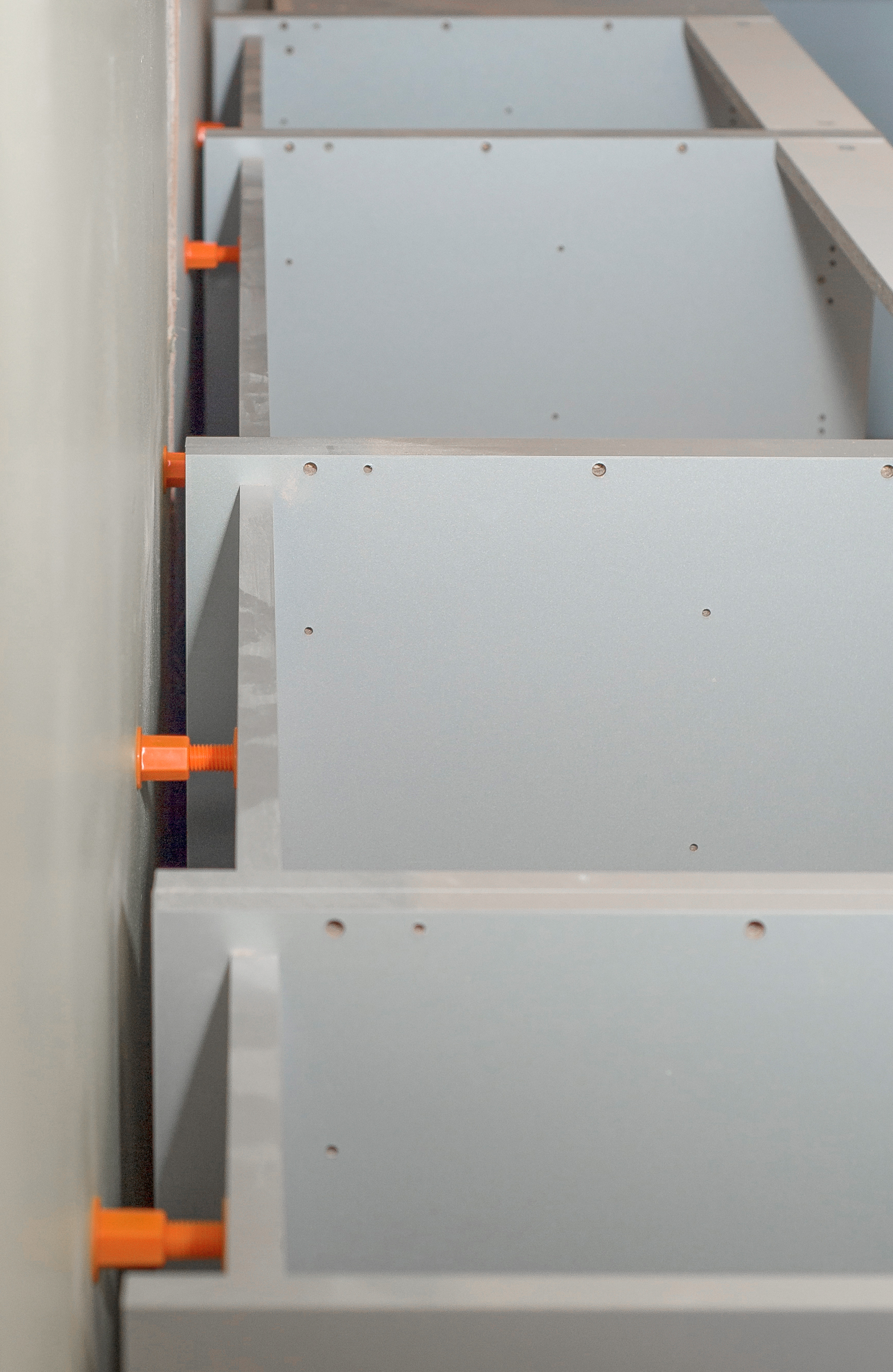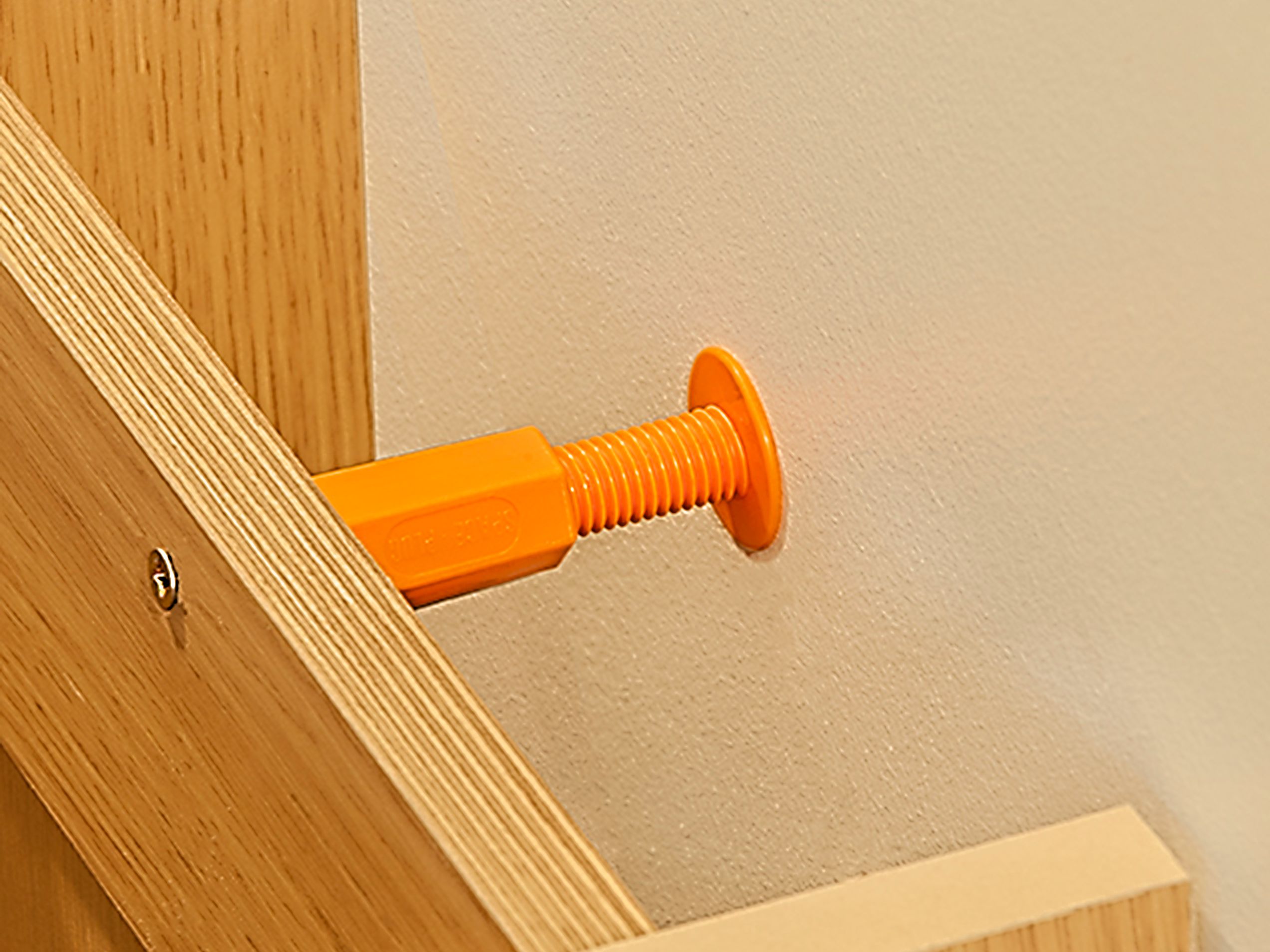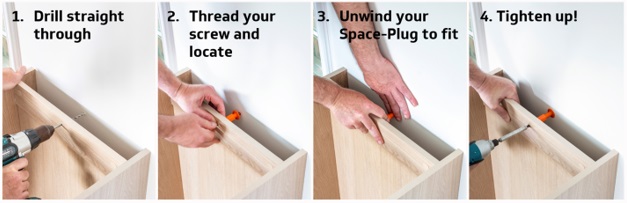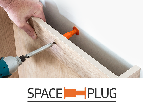 Space Plug's adjustable space fixing is the ideal way to fit kitchen units and tie back all sorts of furniture.
